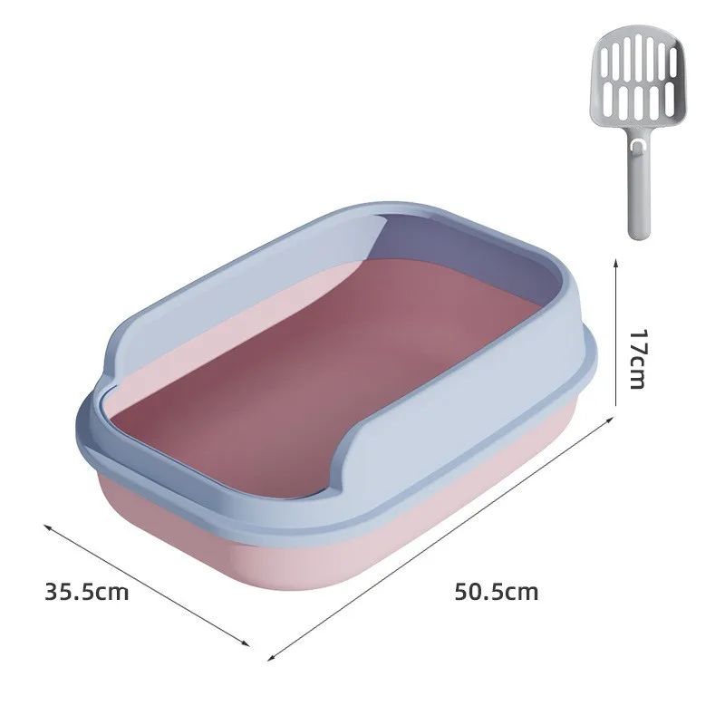 ليتر بوكس عملي ومريح للقطط، مزوّد بحواف مرتفعة لتقليل تطاير الرمل، ويأتي مع مجرفة مناسبة للتنظيف اليومي.