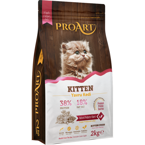 يحتوي ProArt® Kitten Food على محتوى الألياف المناسب والمواد المضافة المحددة لتعزيز الهضم الجيد وتقليل كمية البراز ورائحته. إنه طعام كامل ومتوازن مصنوع من مصادر بروتين ممتازة. يحتوي على جميع العناصر الغذائية التي ستحتاجها قطتك يوميا والمركبات القوية المضادة للأكسدة التي تدعم جهاز المناعة.