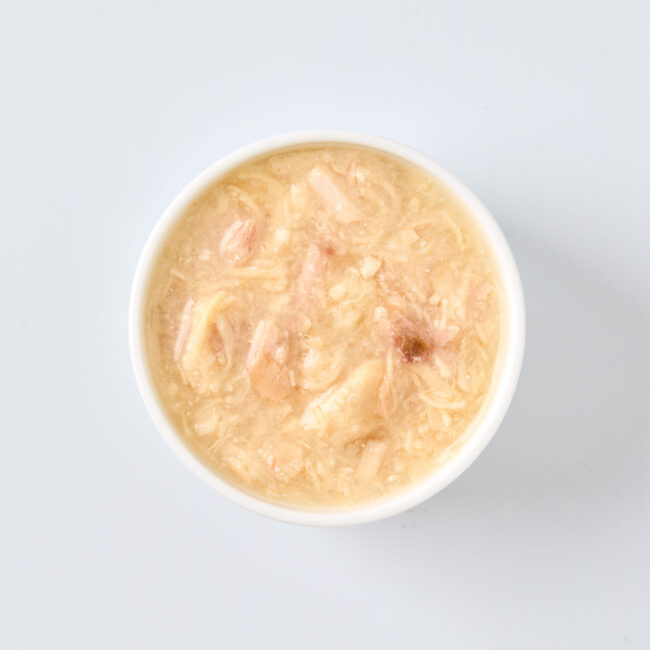 - مصنوع من تونة اللحم الأبيض وصدور الدجاج 100٪ بشرية (منزوع العظم ومنزوع الجلد) (خال من الكائنات المعدلة وراثيا)