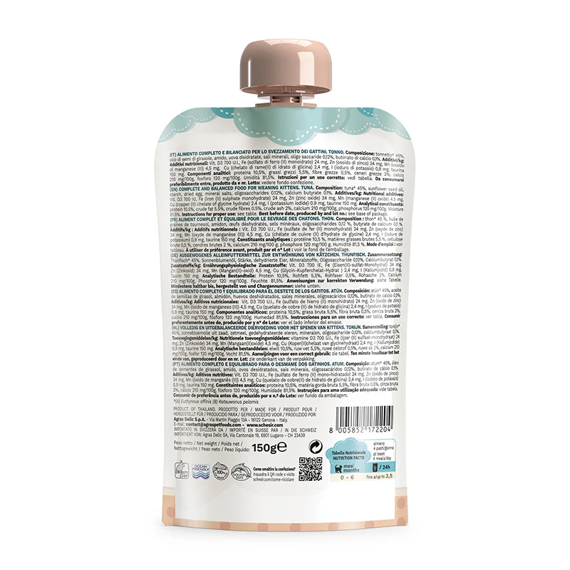 . وصفة شيزير هذه مصنوعة من شرائح التونة الحقيقية وتتميز بقوام كريمي ناعم ومثالي أثناء الفطام • الوصفة تحتوي على فيتامينات ومعادن كما تحتوي على نسبة عالية من البروتين . يوصى به بشكل خاص لتطوير الجهاز المناعي للقطط التي تتراوح أعمارها بين 0-6 أشهر . تضمن الحقيبة سهلة الاستخدام التي يبلغ وزنها 150 جرامًا مع تركيبة الغطاء الكثير من الوجبات الصغيرة طوال اليوم • صممت جميع وصفات العناية بالقطط خصيصًا للقطط . الطريقة المثالية للعناية بصديقك ذي الفراء كل يوم • مكونات مختارة بجودة فائقة تحت إشراف المتخصصين والأطباء البيطريين • خالي من مسببات الحساسية التي قد تسبب الأرق أو المتاعب الصحية لقطتك . نسبة رطوبة مناسبة لزيادة النشاط والحيوية