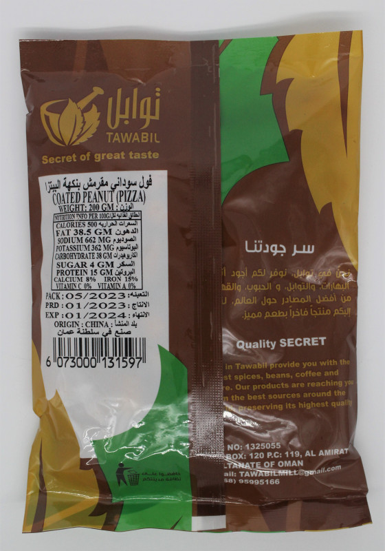 منتج لذيذ ومثالي لعشاق الوجبات الخفيفة. يتميز هذا الفول السوداني بمذاقه المقرمش الرائع والمميز، بالإضافة إلى النكهة الشهية والممتعة للبيتزا. يتم صنعه بعناية فائقة باستخدام أفضل المكونات الطبيعية، مما يمنحه الطعم الغني والجودة العالية. بفضل حجمه المثالي ووزنه البالغ 200 غرام، يمكنك حمله في حقيبتك أو حقيبة الغداء للاستمتاع به في أي وقت وفي أي مكان. سواء كنت في العمل أو في نزهة أو حتى في المنزل، فإن الفول السوداني المقرمش بنكهة البيتزا سيكون خيارك المثالي لتلبية شهيتك ومشاركته مع الآخرين. استمتع بالتجربة المثيرة للذوق مع هذا المنتج الرائع، حيث يمكنك تذوق النكهة المميزة للبيتزا مع كل قطعة من الفول السوداني المقرمش. ستشعر بالسعادة والرضا عندما تتذوق هذه الوجبة السريعة واللذيذة. احصل عليه الآن واستمتع بتجربة تذوق لا تُنسى. ستجد نفسك مدمنًا على هذا الطعم الرائع وستعيش مغامرة لا تُنسى في كل قطعة. اطلبه اليوم واستمتع بأطيب النكهات المقرمشة والممتعة.
