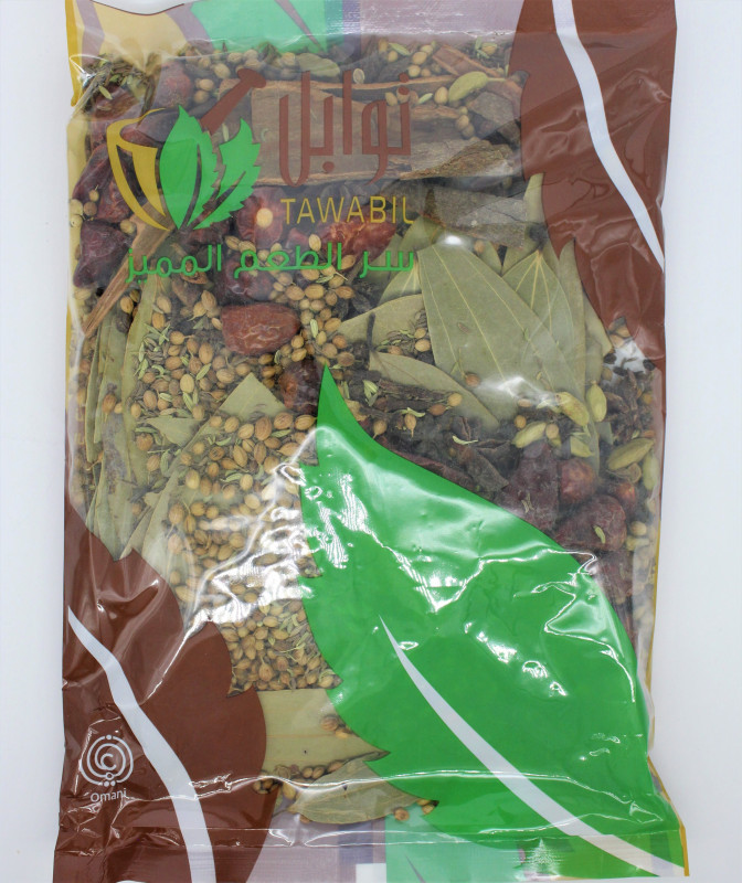 تحتوي هذه الخلطه على مزيج مثالي من البهارات المتنوعة مثل الكمون والكزبرة والكركم والنجمه والهيل والشمر والقرفة والفلفل الأسود وغيرها الكثير.