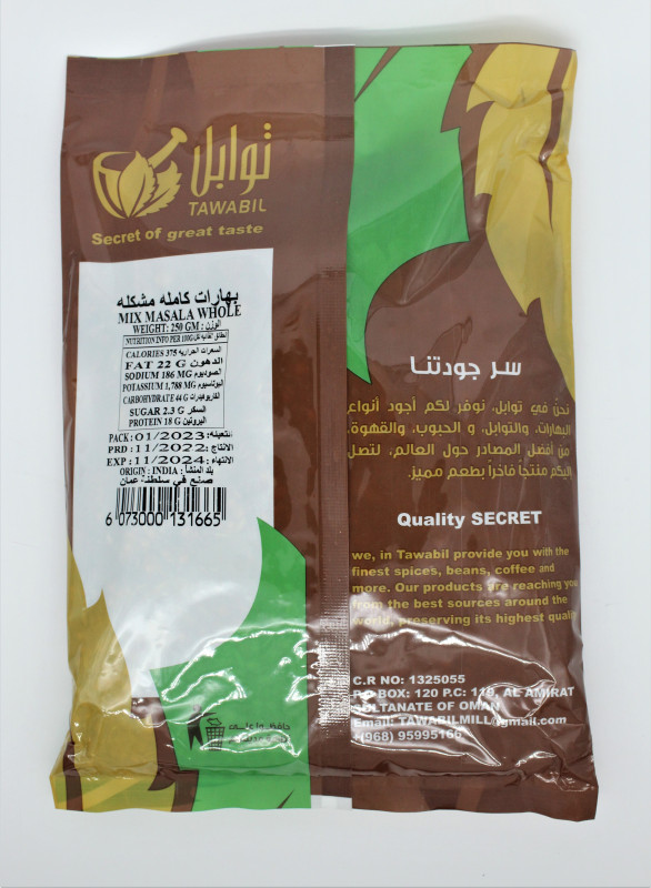 تحتوي هذه الخلطه على مزيج مثالي من البهارات المتنوعة مثل الكمون والكزبرة والكركم والنجمه والهيل والشمر والقرفة والفلفل الأسود وغيرها الكثير.